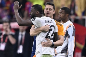 皇馬中衛(wèi)呂迪格上賽季對(duì)陣巴薩的國(guó)王杯決賽中向主裁投擲雜物,因此被停賽6場(chǎng),本賽季西甲首輪他也因此缺席。
