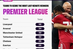 以下為英超歷史絕殺次數(shù)最多球隊(duì)top10: