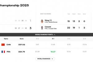 此役過后,中國女排損失18.27分,世界排名下跌2位至第7,法國女排世界排名上升1位至第13。