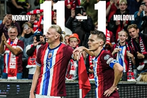 體育資訊09月10日訊 世預(yù)賽歐洲區(qū)小組賽I組第6輪,挪威主場(chǎng)11-1狂勝摩爾多瓦,哈蘭德五子登科+助攻雙響,厄德高建功+助攻雙響。