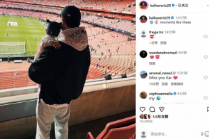 本場(chǎng)比賽因傷缺戰(zhàn)的哈弗茨也抱著自己的孩子來(lái)到現(xiàn)場(chǎng)觀戰(zhàn),球員在個(gè)人社媒曬照寫(xiě)道:“??????就像這樣的時(shí)刻!”