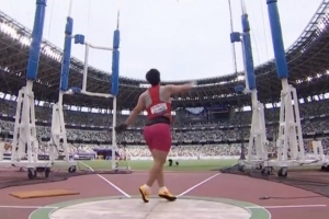 女子鏈球預(yù)賽,中國(guó)選手趙杰第一次試投就投出74米24,超過(guò)74米的晉級(jí)線,成功晉級(jí)決賽。