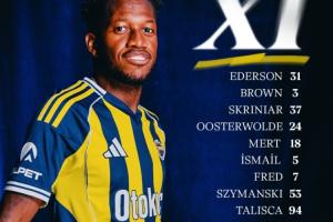 本場比賽同樣先發(fā)的還有前曼聯(lián)中場弗雷德。