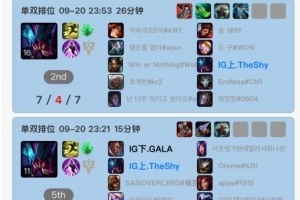 體育資訊9月22日訊 根據(jù)韓服排位統(tǒng)計(jì)小程序顯示,iG選手五人近日在韓服加練,GALA、Wei加練至今日凌晨兩三點(diǎn),Theshy狂玩上單挖掘機(jī)。