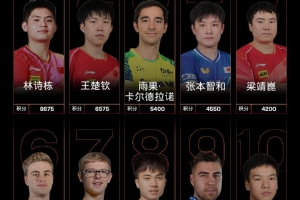 男子單打,中國隊球員林詩棟、王楚欽位列前二,梁靖崑位列第五,向鵬位列第十。